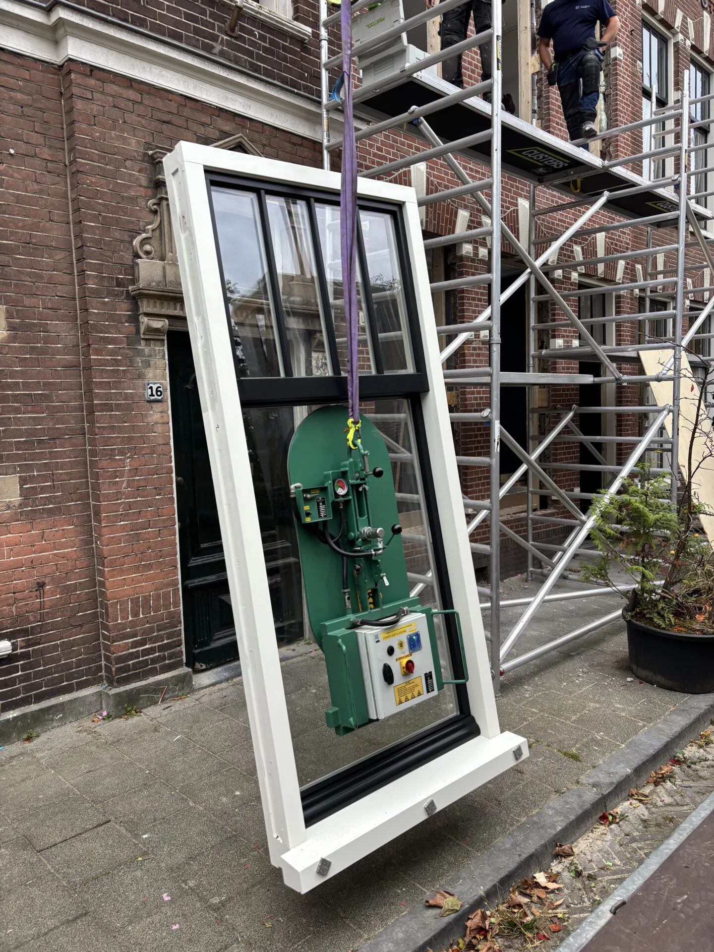 Voor dit project in Leiden hebben wij een monumentaal pand voorzien van nieuwe houten kozijnen. De oorspronkelijke schuiframen zijn aan de buitenzijde in dezelfde stijl behouden, maar uitgevoerd als draaikiepramen voor meer comfort en gebruiksgemak. De plaatsing is uitgevoerd met behulp van een hijskraan.