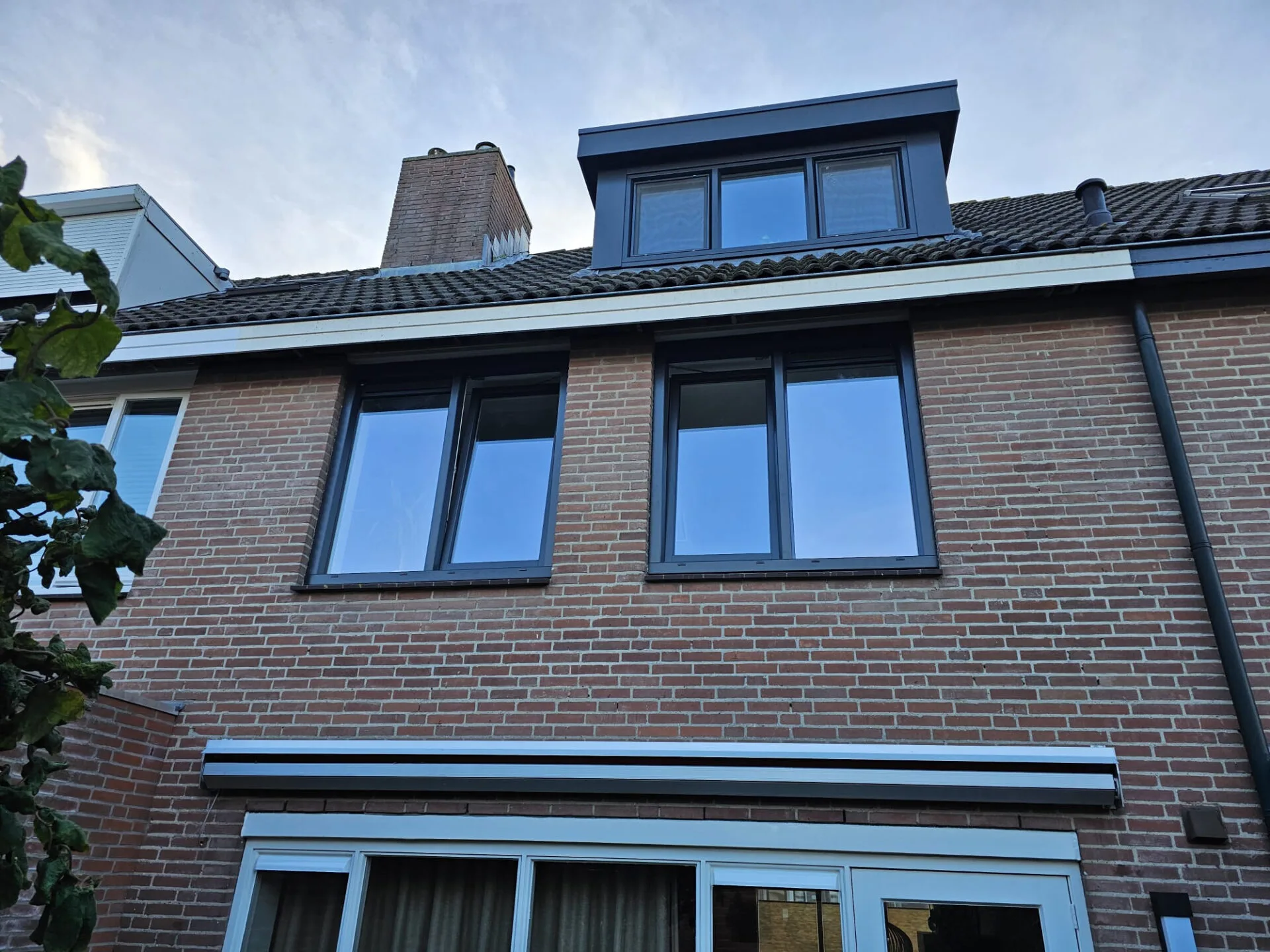 Voor dit project hebben wij de draaikiepramen op de eerste verdieping vervangen met kunststof kozijnen. De kozijnen zijn uitgevoerd in antracietgrijs met houtnerfstructuur en HVL (houtverbindingslook), wat zorgt voor de uitstraling van traditionele houten kozijnen. De ramen zijn voorzien van triple glas en er is een hor geleverd. De plaatsing is door ons verzorgd.