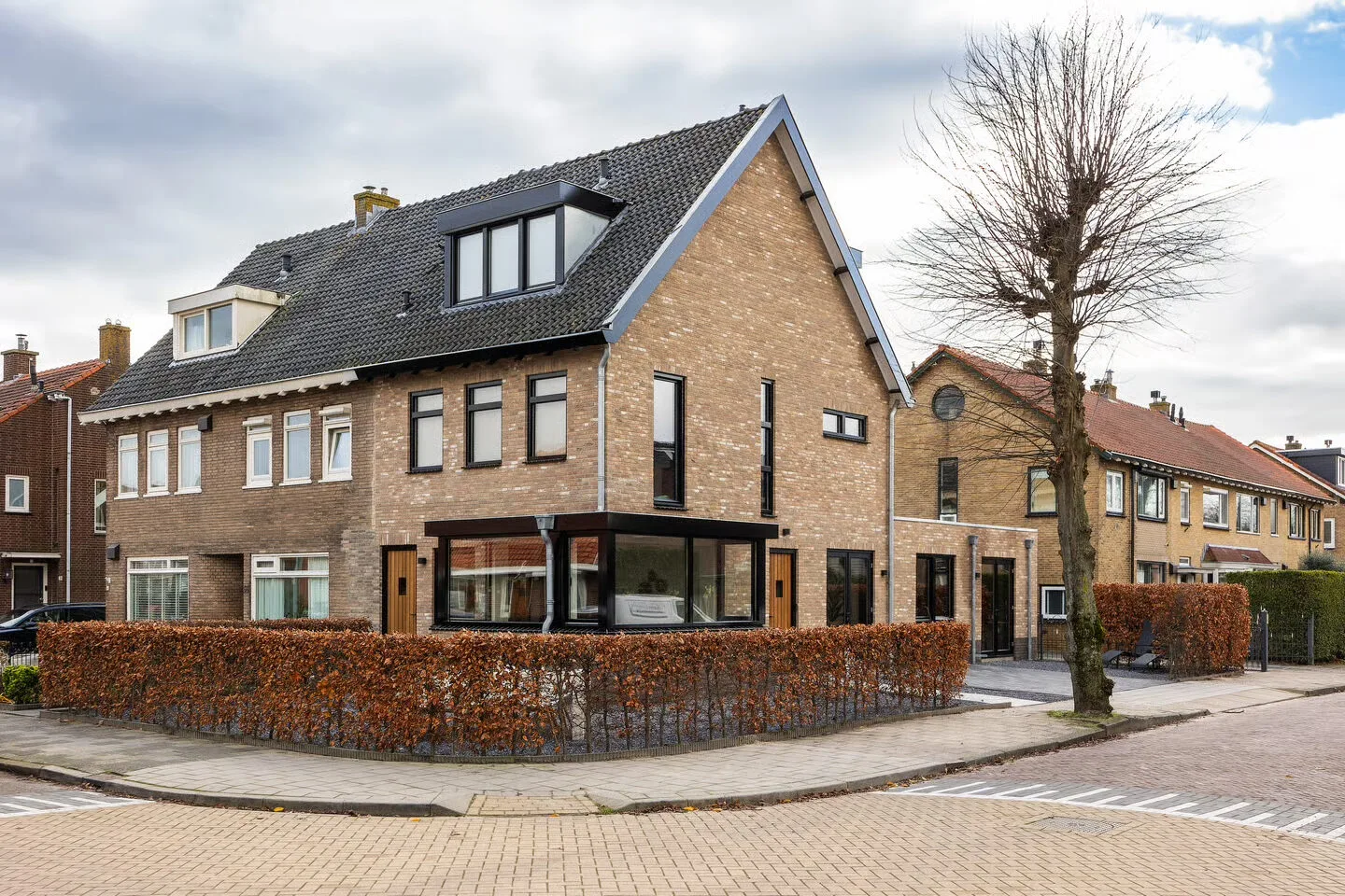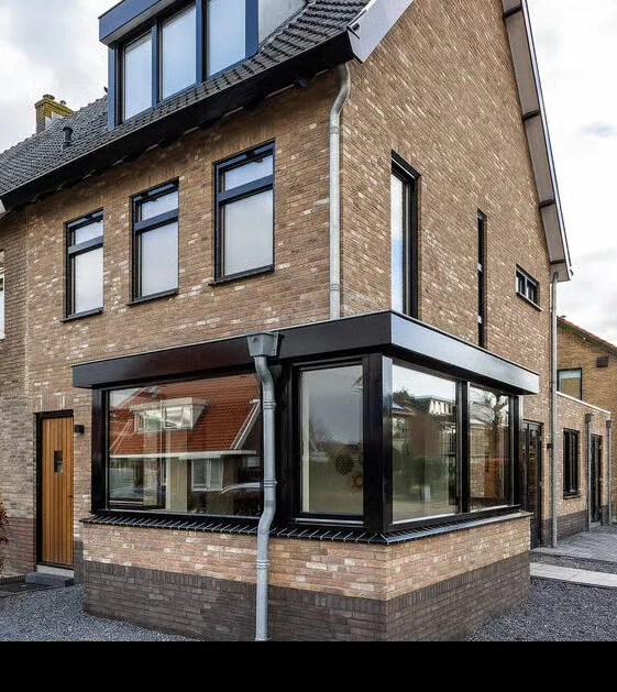 Voor dit project hebben wij het volledige huis voorzien van nieuwe houten kozijnen, waarbij maatwerk centraal stond. De voordeur is speciaal ontworpen en op maat gemaakt volgens de wensen van de klant. De profielen zijn zo uitgevoerd dat ze goed aansluiten bij de oorspronkelijke stijl van de woning. Daarnaast hebben wij een stalen binnendeur geplaatst en een erkerkozijn met een hoek van 90 graden gerealiseerd. Van productie tot plaatsing is alles door ons in eigen beheer gedaan, met aandacht voor kwaliteit en afwerking.